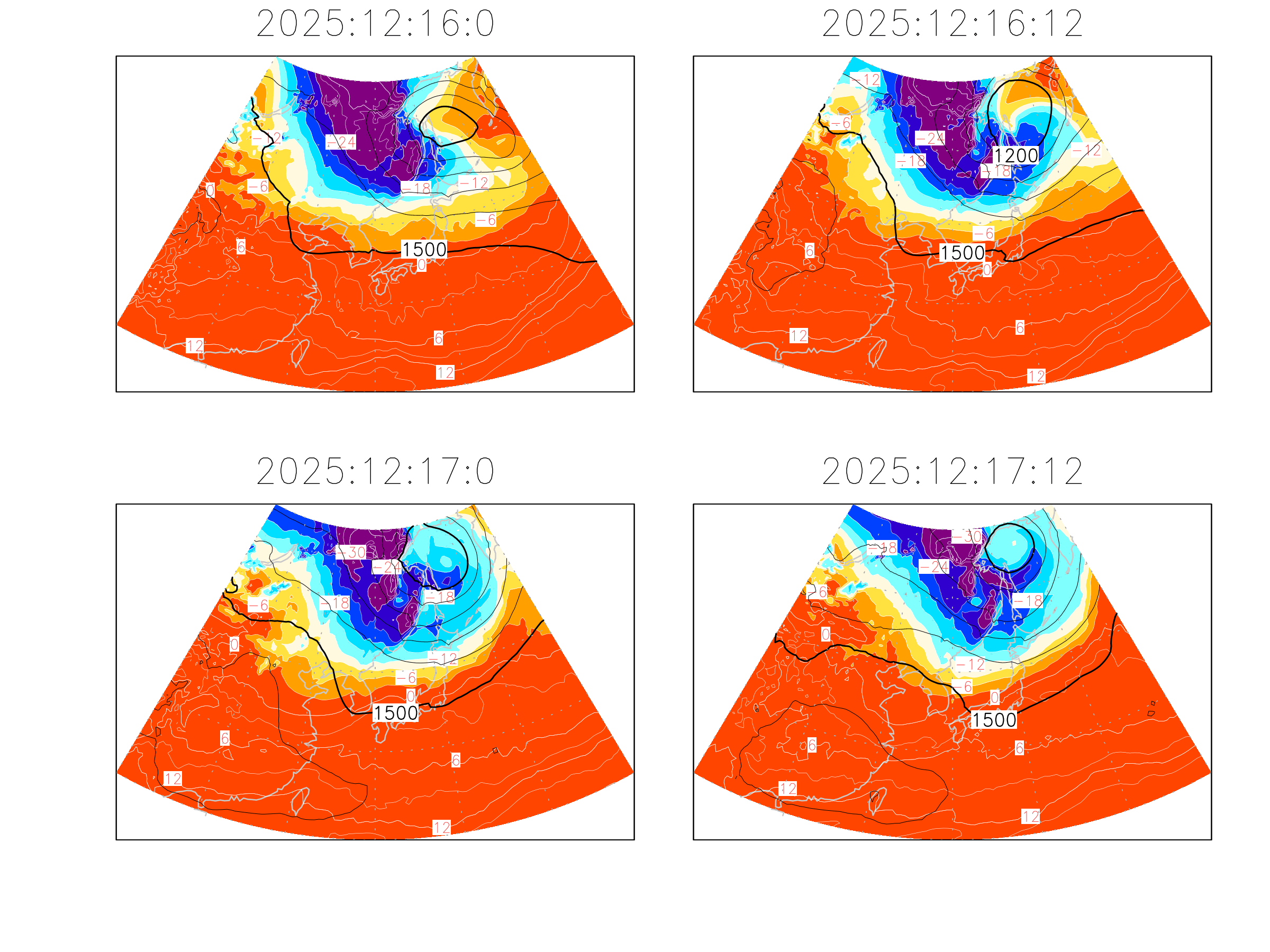 (カラー図:00Z初期値, 12Z初期値)